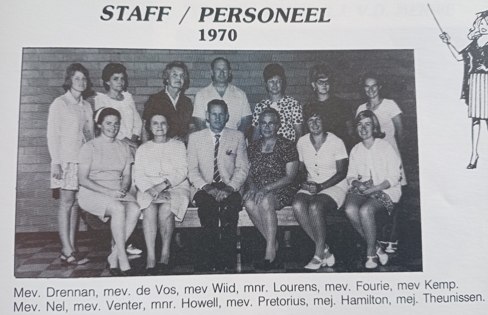 Mr Van der Merwe retired in March 1989, with the school then comprising 337 learners and 19  teaching staff members.