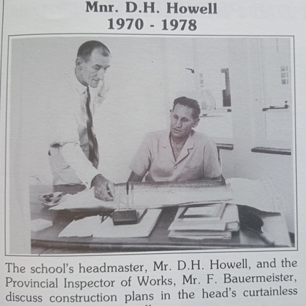 Mr Howell retired in December 1978, leaving behind a thriving school with 717 learners and 32 teaching staff members. Afrikaans was the predominant language and had many classes while   the English classes were generally combined.