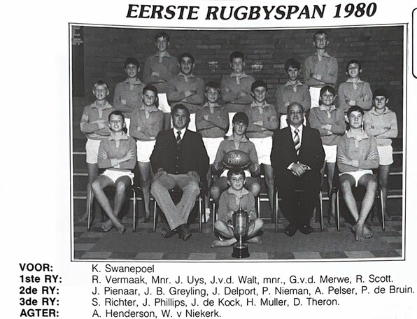 The brilliant Northern Transvaal (Blue Bulls today) wing, JJ van der Walt, was also a proud rugby  product coached and taught at our school during this era. He was also selected for the SA /20 Team.  His /10 coach, Mr G Fourie, stated that he was an outstanding player who scored many tries as in his No 10 jersey.